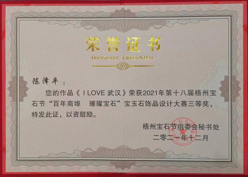 我院首饰设计专业学子陈泽平、陈昕鑫荣获三等奖!刘美巍、黎谢优荣获优秀创意奖!郭涛、肖玉洁两位教师荣获优秀指导奖!武汉工程科技学院荣获优秀组织奖!