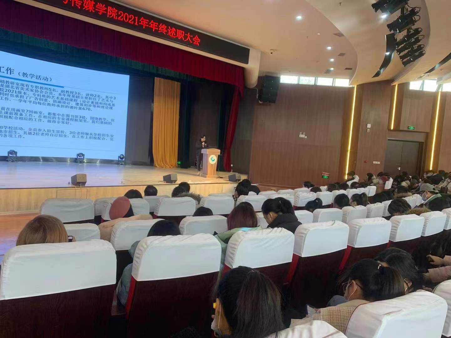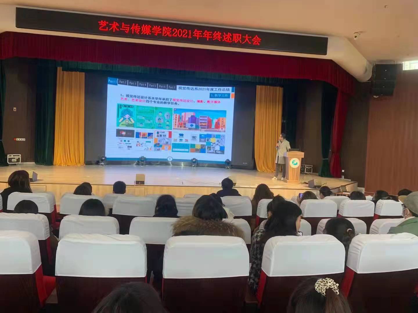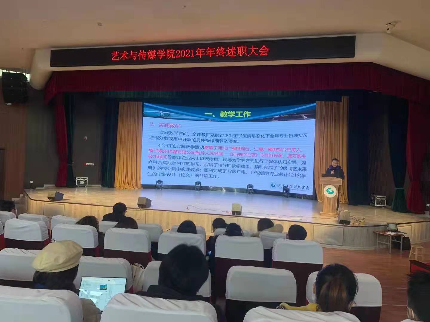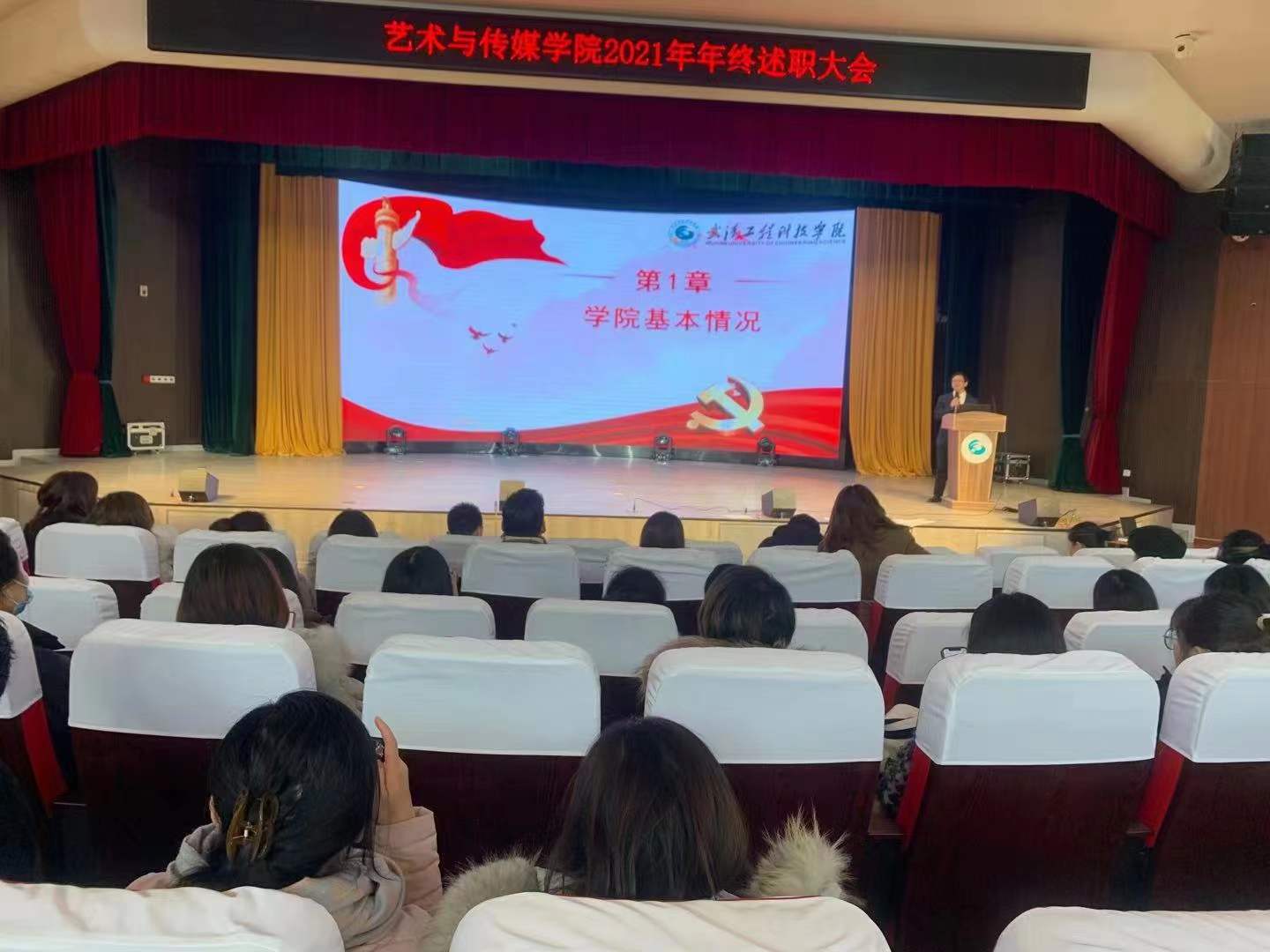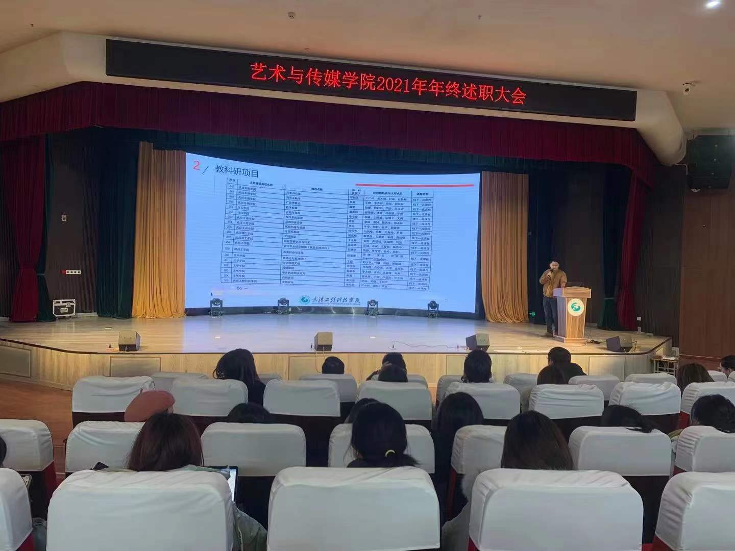12月31日上午,艺术与传媒学院在图书馆五区报告厅召开2021年度年终述职大会。武汉工程学科技学院副校长、财务总监、纪委书记廖璐莎、艺术与传媒学院院长杨先艺、常务副院长崔宏伟、党总支书记李毅、副院长张娟以及全体教职工参加了会议。会议由杨先艺院长主持。各教研室主任就2021年全年工作,从教学、科研、专业建设、师资队伍建设以及招生宣传工作等方面进行了全方面的总结和汇报。