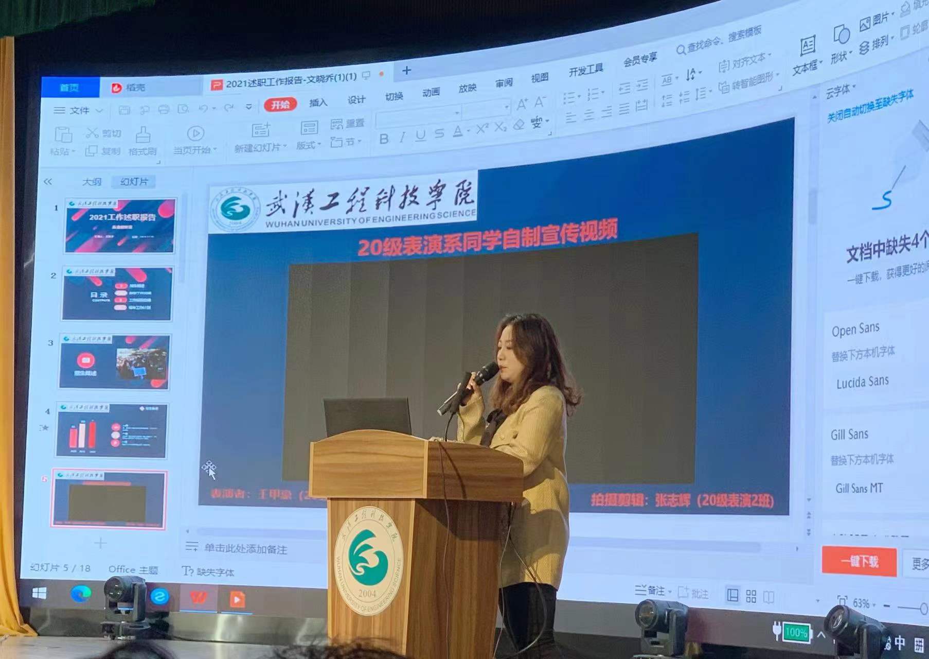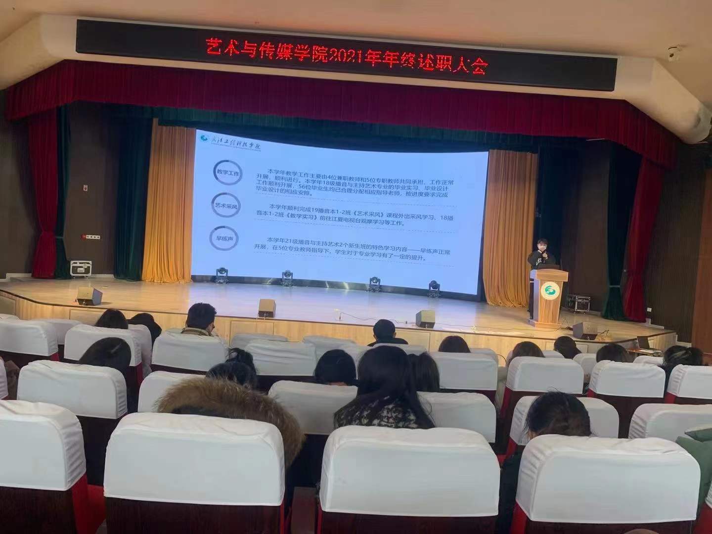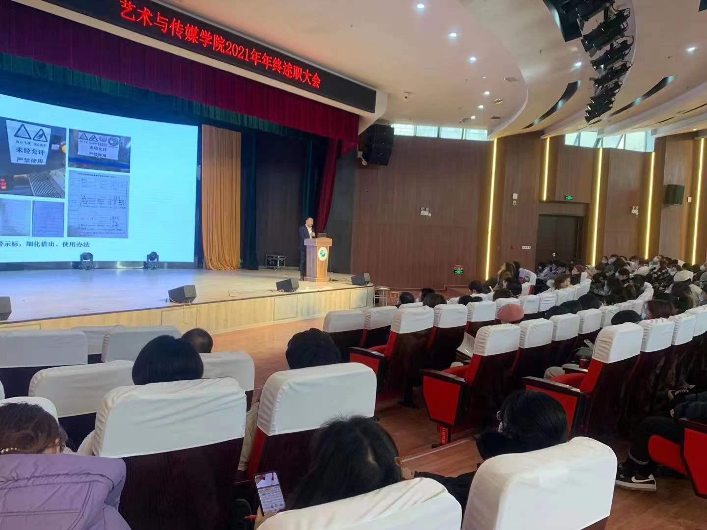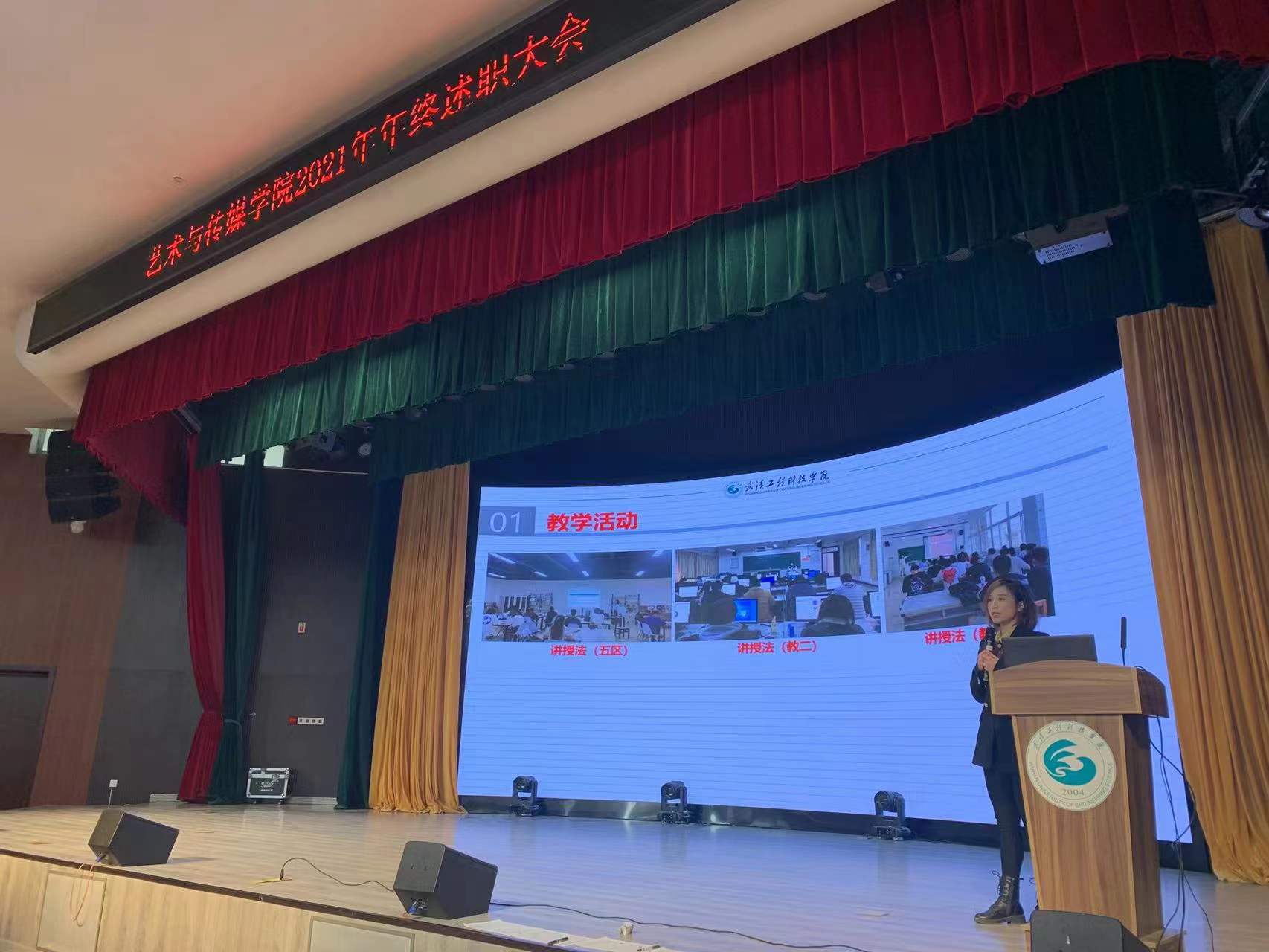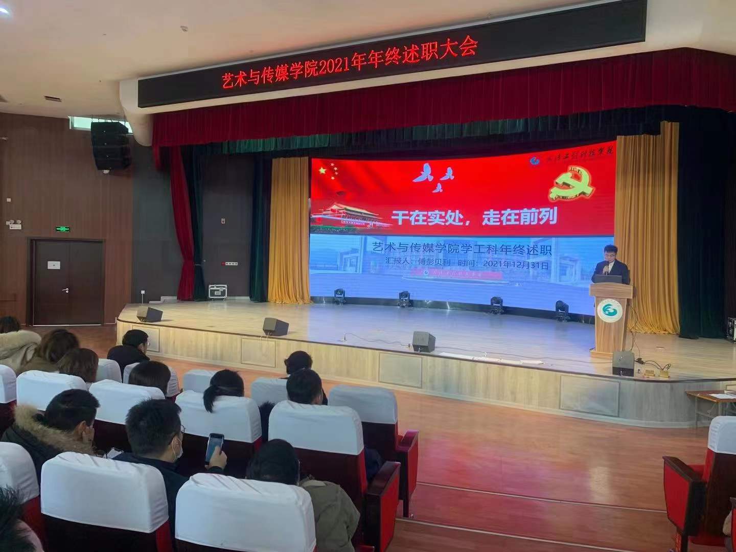 12月31日上午,艺术与传媒学院在图书馆五区报告厅召开2021年度年终述职大会。武汉工程学科技学院副校长、财务总监、纪委书记廖璐莎、艺术与传媒学院院长杨先艺、常务副院长崔宏伟、党总支书记李毅、副院长张娟以及全体教职工参加了会议。会议由杨先艺院长主持。各教研室主任就2021年全年工作,从教学、科研、专业建设、师资队伍建设以及招生宣传工作等方面进行了全方面的总结和汇报。