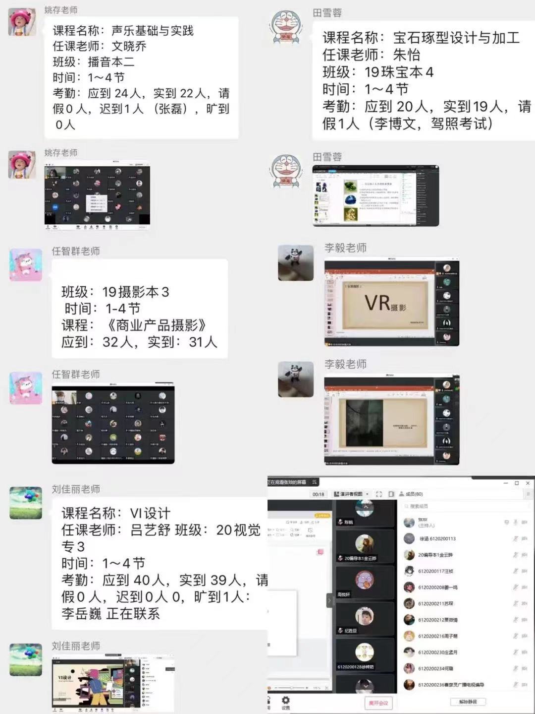 为确保线上教学有序开展,教学过程质量跟踪可控,3月1日上午,艺术与传媒学院党总支书记李毅、学工科长傅彭贝利及全体辅导员开展线上教学检查工作。在查课的同时,还认真了解了学生们的课堂表现、教师们的授课状态,以促进课程更好的开展。