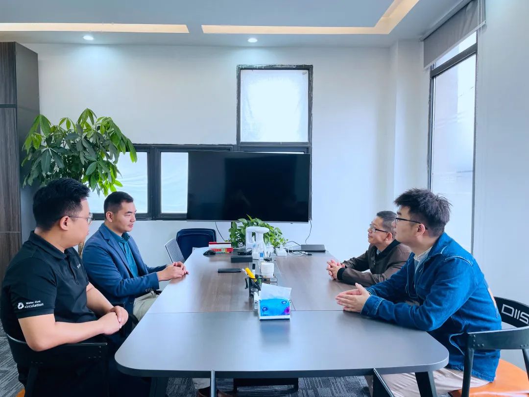 会上,滴水科技公司董事长周杰对李毅一行的到访表示热烈欢迎。双方就当前MCN机构发展现状、网络直播带货行业、智能清洁类小家电零售行业的发展以及我院播音与主持艺术、视觉传达设计、广播电视编导等专业的人才创新培养模式、教学课程体系、学生实习培训方案和就业等相关内容进行了深入探讨和交流。